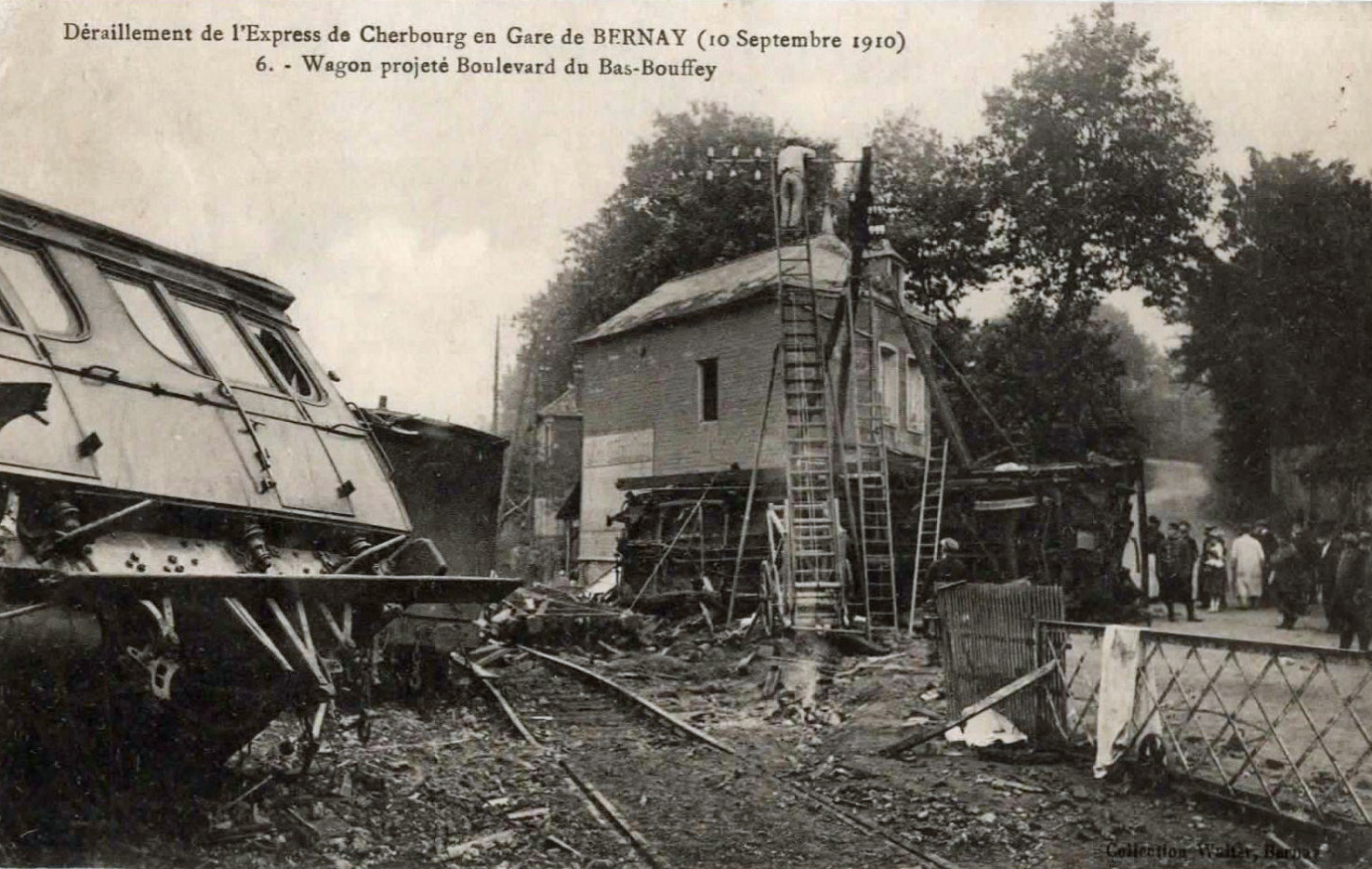 Accident entre Bernay gare et le PN le 10/08/1910 Collection « Y avait ça chez Mémé » https://yavaitcachezmeme.fr/index.php/bernay/histoire-ferroviaire/catastrophe-ferroviaire/