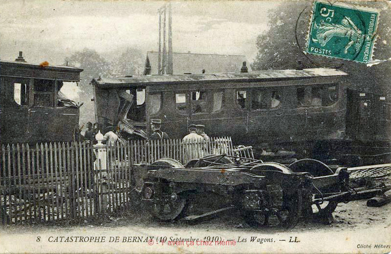Accident entre Bernay gare et le PN le 10/08/1910 Collection « Y avait ça chez Mémé » https://yavaitcachezmeme.fr/index.php/bernay/histoire-ferroviaire/catastrophe-ferroviaire/