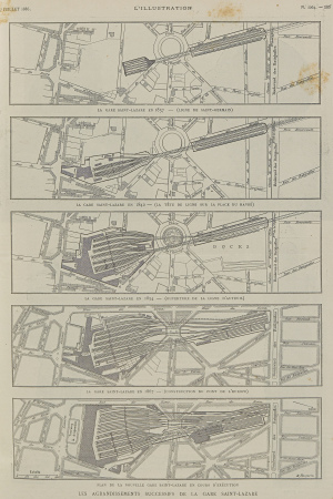 - La gare Saint Lazare a connu de nombreux développements que nous avons arbitrairement découpé en deux projets principaux et 6 évolutions majeures de la gare. Le découpage en gare ne fait pas référence uniquement à un bâtiment mais aussi à l’ensemble des voies le desservant.